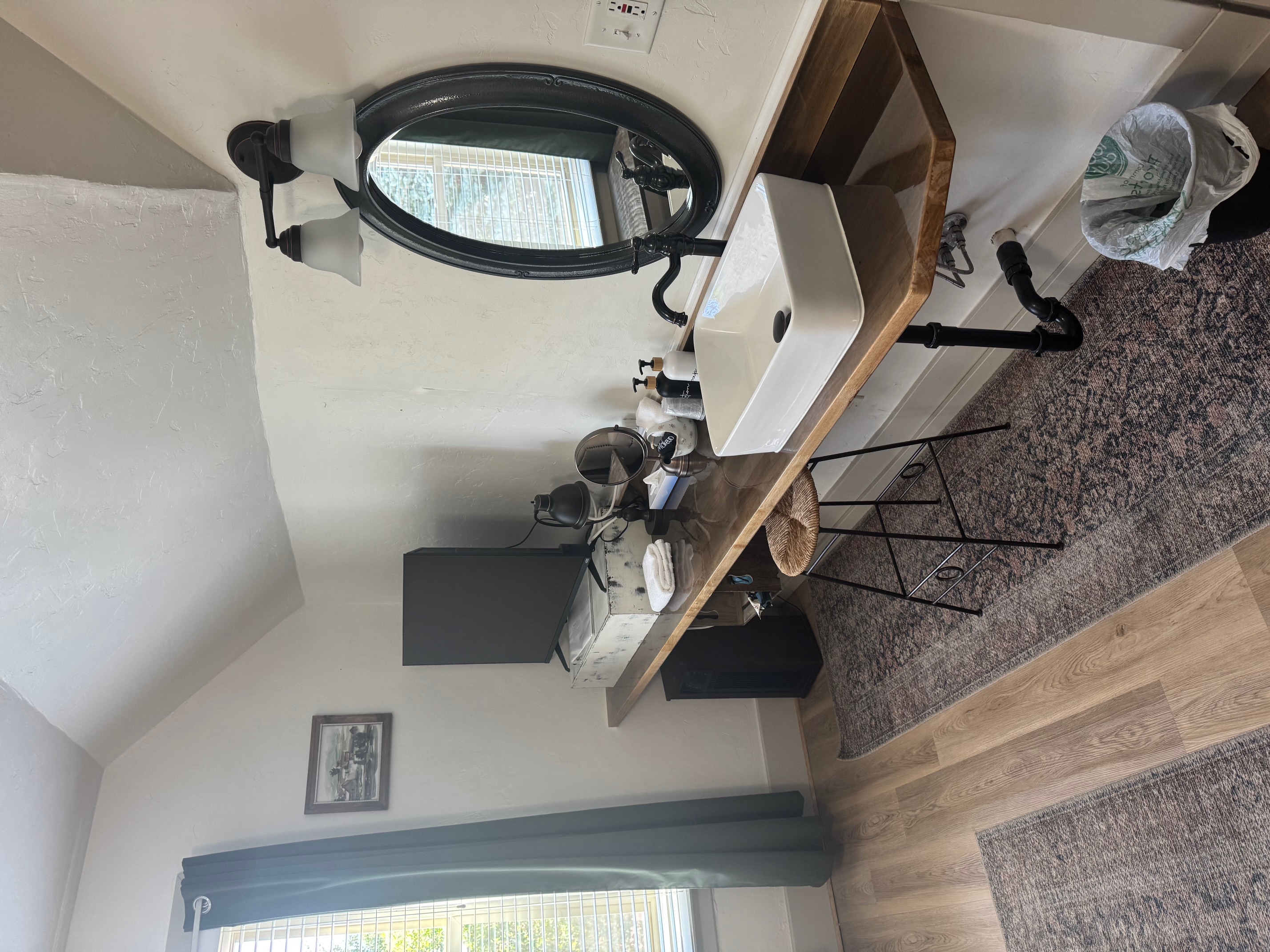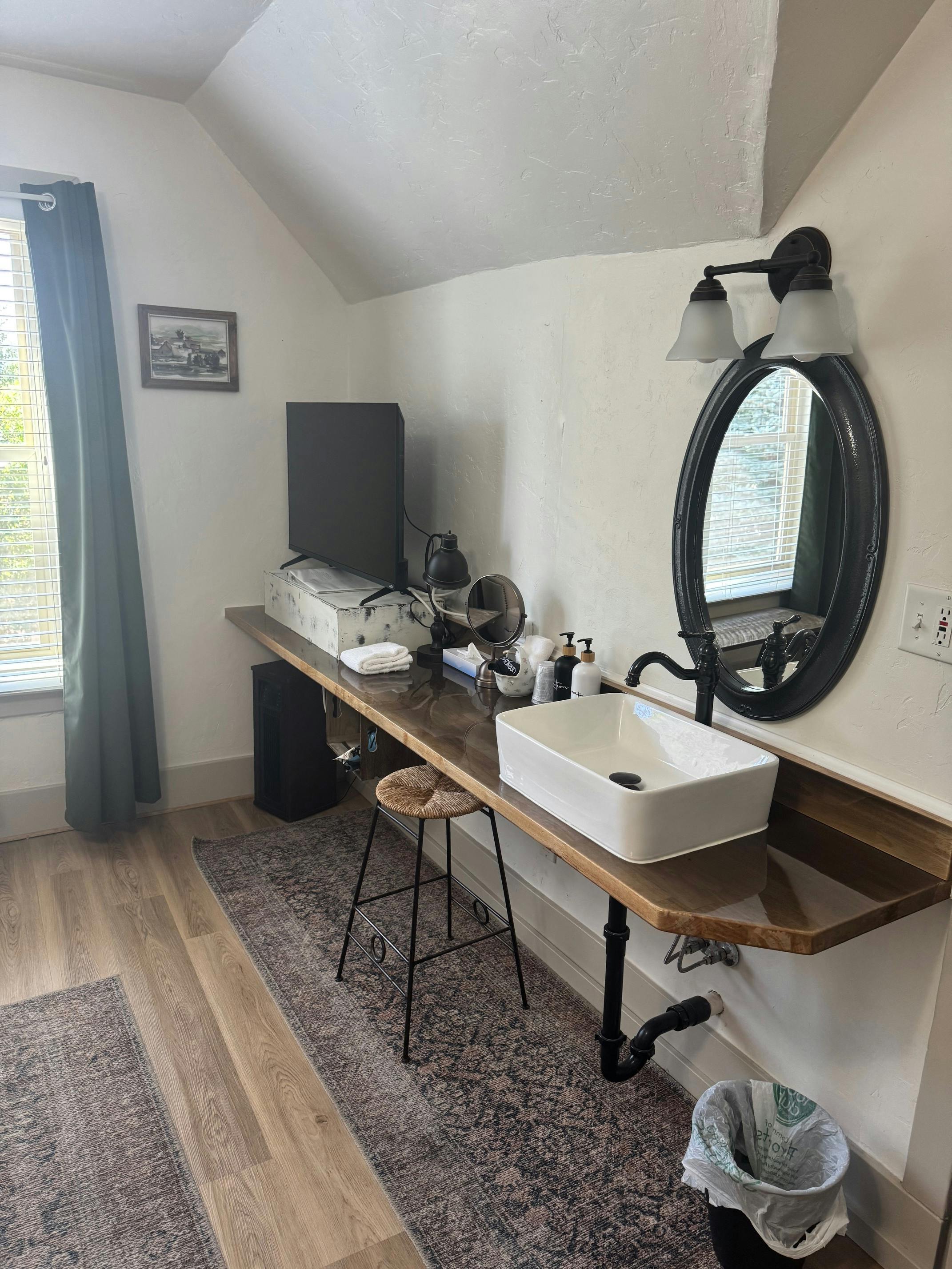 "Just Peachy" is located on the West side of the home (upstairs). It is named for the soft, beige peach that it is. We chose this color because it reminded us of a color found in the beautiful, red rocks that one can find near Bryce Canyon. This room overlooks downtown Panguitch in the distance. It comes with a nice Queen bed and TV.. It has it's own air condition and heating unit. This room has a private bath with a walk in shower. It also has a fridge and microwave for your convenience. This room has a lot of the charm of the old house. Please be aware this room is located upstairs.