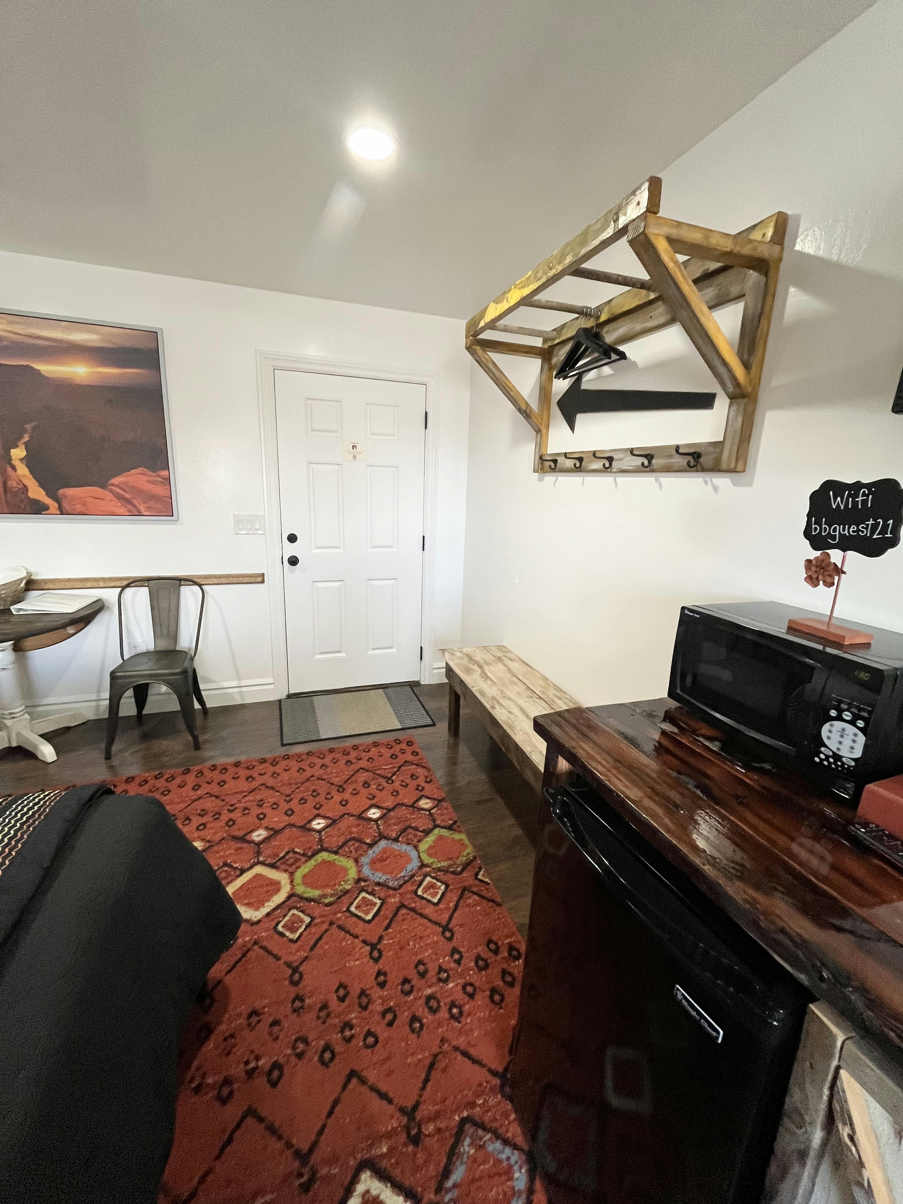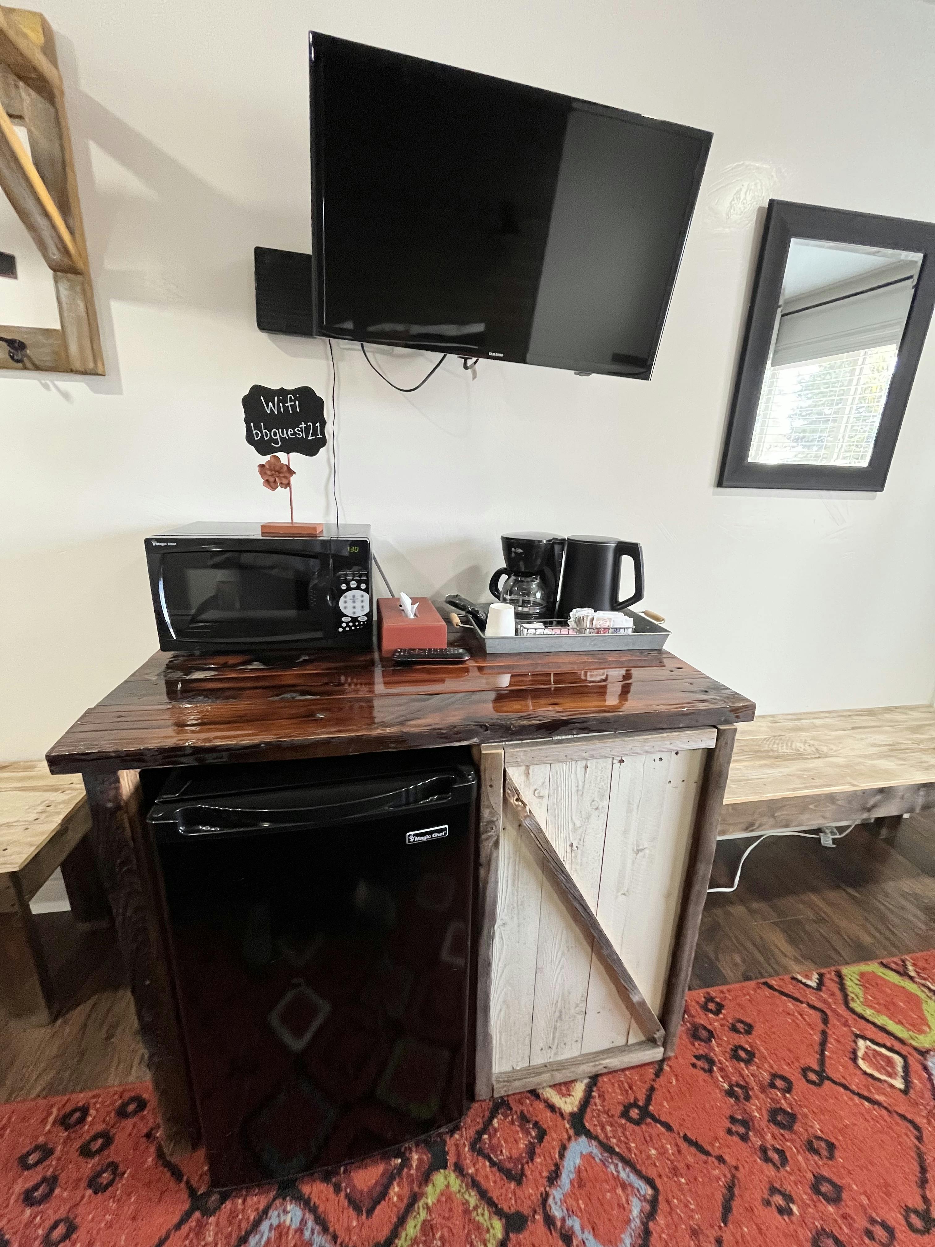 Our amenities are a cut above those you'd find in a traditional hotel or motel. Rooms have a flat-screen TV with cable channels. Every room comes with a private bathroom equipped with a bath and or shower. For your comfort, you will find free toiletries and a hair dryer. Each room also has a fridge, microwave, and coffee maker.